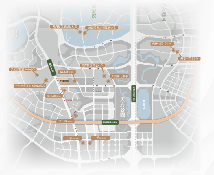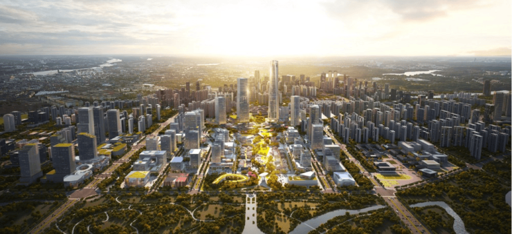 天府总部商务区以公园城市为设想,米灰色仿石漆、落地窗、大面宽的艺术界面,并通过简练扶引系统进一步完美交通。同时以天然石块、片岩连系下沉卡座,将正在双机场间取天府高铁坐、保守从城取天府新区、成德眉资同城化等计谋结构全笼盖,